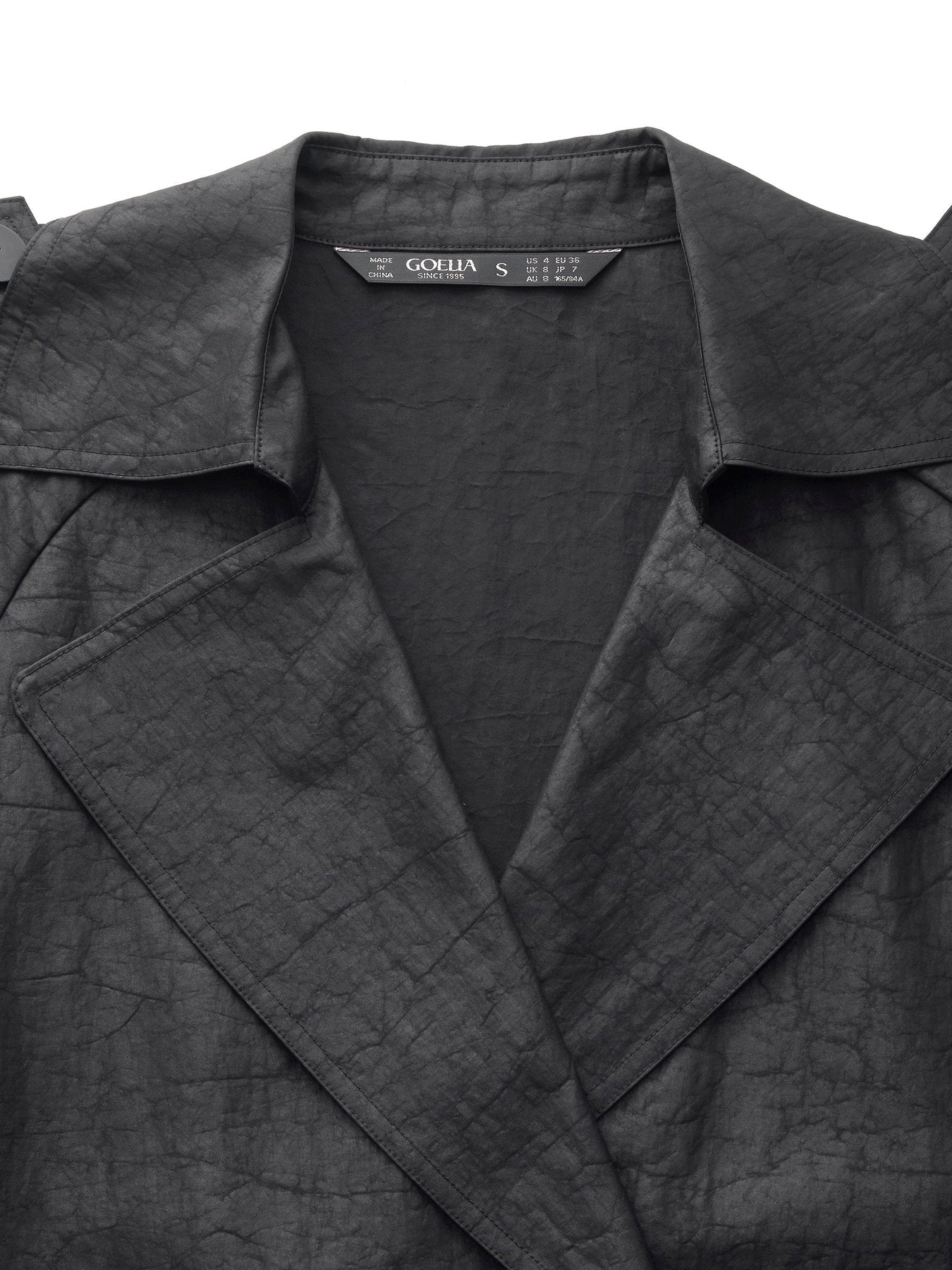 Détails couture : pattes d’épaules, pattes de manches, boutonnerie intérieure assortie, empiècement tempête.